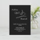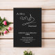 Este elegante convite de casamento preto e branco é perfeito para um casamento moderno. o simples design apresenta uma caligrafia branca elegante num fundo preto.