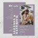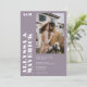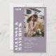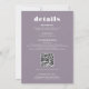 Elegante Bold branco simples no convite para casamento de fotos roxas com lavanda sem som com uma fonte moderna em negrito, uma foto e um detalhe no verso com código qr.