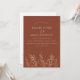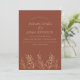 Laranja Mínimo Simples Queimada e Flor Selvagem Dourada Deixam Convite Para Casamento. Imprime estigmaticamente seus convidados de casamento com este simples, mas elegante, terracota com folhas de ouro convite de casamento, com uma série de lindas folhas de ouro de flor silvestre colocadas sobre um moderno fundo laranja-castanho queimado. Este convite de casamento dá uma sensação moderna e minimalista, perfeita para qualquer casamento botânico moderno. Este convite de casamento mínimo, dourado e marrom irá dar o tom para qualquer cenário de casamento rústico e subestimado, rodeado por delicadas folhas brancas ou ouros ou flores silvestres, e decoração de casamento dourado, marrom ou terracota. Uma adição perfeita a qualquer celebração de casamento bestial. O Coletivo de Domingo © por Rachel Hannah Gee