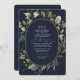 Desfrute de uma ilustração minimalista de verde-aquarela e eucalipto sobre um fundo marinho escuro contrastante combinado com uma tipografia elegante com um toque de oval de cor ouro. Economize adicionando detalhes e código QR na parte traseira para seus convidados para rsvp. Opções com folha real disponível na coleção Sienna. Precisa de peças que não estejam na coleção? Entre em contato comigo usando o botão de contato abaixo.