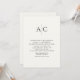 Simples e elegante convite de casamento minimalista com um monograma de tamanho excessivo. A design é despojada de ornamentação externa, dando assim prioridade à funcionalidade, equilíbrio e harmonia. Perfeito para casais que abraçam a maior simplicidade e estilo. Detalhes do texto na tipografia minimalista mista. ❀ ❀ ❀ Por favor, procure ajuda para personalizar ou personalizar seus desejos individuais. Ou, para obter ajuda para criar produtos relacionados ou maneiras personalizadas de criar seu pacote perfeito de papelaria de casamento.
