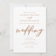 Este convite de casamento castanho é uma cor real quente para uma noiva ou noiva que procura uma mistura entre macio e masculino. A escrita adorável e minimalista apresenta uma simples tipografia cursiva juntamente com uma fonte de serifa moderna e dinâmica. Este castanho macio é perfeito para um evento do outono.