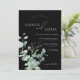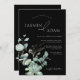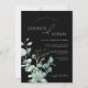 O nosso convite de Casamento Eucalyptus Monograma, Simples Verde Negra, captura a essência da beleza botânica e do encanto rústico. Apresentando delicadas folhas de eucalipto e verde elegante em um fundo preto em greve, este design com seu elegante monograma de casais é perfeito para seu casamento inspirado em boho. O filme foliar acrescenta um toque de elegância da natureza, criando um pano de fundo sereno e sofisticado para o seu dia especial.