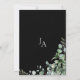 O nosso convite de Casamento Eucalyptus Monograma, Simples Verde Negra, captura a essência da beleza botânica e do encanto rústico. Apresentando delicadas folhas de eucalipto e verde elegante em um fundo preto em greve, este design com seu elegante monograma de casais é perfeito para seu casamento inspirado em boho. O filme foliar acrescenta um toque de elegância da natureza, criando um pano de fundo sereno e sofisticado para o seu dia especial.