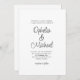 Projete um senso de simplicidade moderna com este simples design de convite para casamento na moda. Os nomes da noiva e do noivo aparecem em um roteiro casual de caligrafia moderna, acompanhado de uma simples face italicizada que dá os detalhes do seu dia especial. O resultado é um olhar saboroso e minimalista com talento moderno. Personalize o texto com seus detalhes no modelo de texto fácil de usar. Depois de substituir os nomes de exemplo por seus nomes, talvez seja necessário realocar os nomes de seu gosto. Você pode fazer isso rolando para baixo até a parte inferior do modelo de design e selecionando "clicar para personalizar mais". Isso abrirá o modelo de design e permitirá que você clique e arraste seu texto para realocar, se necessário.