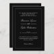 Com elegante estilo clássico e simplicidade moderna, este adorável convite de casamento combina lindas fontes de script com texto de serifa de eterno para transmitir seus detalhes de casamento em um encanto saboroso e desconhecido. O texto branco sobre um fundo preto com uma borda fina e alinhada adiciona apenas a quantidade certa de embelezamento a este design eterno. Personalize o modelo de texto fácil de usar com suas informações.