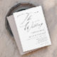 Um Convite de Casamento Elegante Simples Preto e Branco com letra moderna e texto clássico. A parte traseira tem uma foto e código QR para RSVP. Clique no botão de edição para personalizar este design.