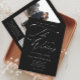 Um Convite Simples de Casamento Negro e Branco, com roteiro moderno e texto clássico. A parte de trás tem uma foto e um RSVP de Código QR. Clique no botão editar para personalizar este design.