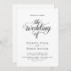Este elegante convite de casamento preto e branco é perfeito para um casamento moderno. O simples design apresenta uma caligrafia preta elegante sobre um fundo branco limpo. O cartão de convite inclui os detalhes do casamento no verso, em vez de pagar um cartão separado.