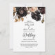 Rosa preto clássico, branco e bege, conto de fadas floral rústico escuro moody convite para casamento