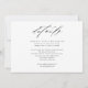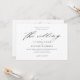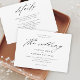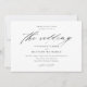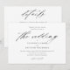 Um Convite de Casamento Preto e Branco Simples e Elegante com letra moderna e texto clássico. A parte de trás tem um espaço para detalhes adicionais, como recepção, acomodações e site do casamento. Clique no botão editar para personalizar este design.