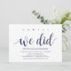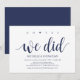 Sim, nós fizemos, cartão de convite para recepção de casamento simples. Este cartão de convite temático de casamento simples rústico azul marinho (você pode personalizar todas as cores) é perfeito para a recepção do seu casamento e festa de celebração pós-casamento. Adicione seus detalhes na fonte / letra correspondente.