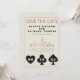 Um casamento divertido e moderno Salve a data para excitar seus convidados para seu casamento em Las Vegas! Esta opção Save the Date apresenta gráficos gráficos gráficos pretos de jogo em negrito, uma renderização moderna do horizonte de Las Vegas e texto e fonte totalmente personalizáveis sobre fundo de marfim creme. No verso, você pode editar para seu próprio site de casamento ou mais informações. Perfeito para um evento tradicional moderno ou clássico - este elegante cartão Salvar a data é versátil!
