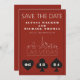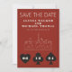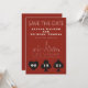 Um casamento divertido e moderno Salve a data para excitar seus convidados para seu casamento em Las Vegas! Esta opção Save the Date apresenta gráficos gráficos pretos de cartas de jogar em negrito, uma renderização moderna do horizonte de Las Vegas e texto e fonte totalmente personalizáveis em fundo vermelho de casino. No verso, você pode editar para seu próprio site de casamento ou mais informações. Perfeito para um evento tradicional moderno ou clássico - este elegante cartão Salvar a data é versátil!