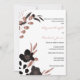 Caligrafia elegante com script manuscrito em rosa com sofisticados convites para casamentos florais de preto, branco e rosa de ouro. Este simples e elegante convite floral de rosa de ouro na moda é perfeito para qualquer garota chique elegante e sofisticada. Este design é ideal para um evento de festa moderno e elegante. Personalize este design com sua mensagem e informações personalizadas. Todas as designs são impressas