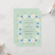 Este design apresenta um fundo suave verde menta decorado com um arranjo de delicadas flores em aquarela. A obra de arte inclui papoulas azul pálido e creme acentuadas por folhagens verde suave. Ela evoca uma atmosfera romântica e serena perfeita para um evento nupcial na primavera. A paleta pastel cria uma estética fresca e arejada.