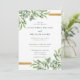 Design apresenta bordas suculentas de Aquarela eucalipto com salpicos de ouro pintados nos cantos, aquarelas em tons de verde. Corresponder itens disponíveis na coleção