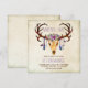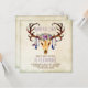 Convite de casamento rústico do sudoeste com pena e jóia adornando crânio de veado em um fundo rústico vintage. Este convite de casamento com crânio de veado e chifre ornamentado é facilmente personalizado para o seu evento, basta adicionar seus detalhes no estilo de fonte, cor e redação de sua escolha.