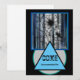 Um convite de casamento super secreto abstrato com motivos pretos e azuis e flores minimalistas. Simples palavra COME. Se você está procurando um casamento emocionante, mas diferente, este é o estilo que você deve escolher.