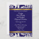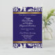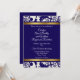 Um convite de casamento azul de regência escura, elegante, com um design úmido, ao longo de cima e de baixo, com uma borda dourada. Personalize o texto branco para atender às suas necessidades de casamento.