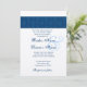 Este marinho azul e prata faz um convite de casamento elegante. A máscara nas costas está em um tom sutil de dois, o que adiciona um toque agradável. Você pode experimentar diferentes tipos de papel para obter apenas a aparência que você quer. Este convite é apresentado num papel metálico prateado de qualidade superior, que dá ao seu convite um shimmer e um brilho extra especiais.