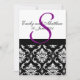 Convite ao casamento tema damasco com Monograma Roxo. Design de layout por Elke Clarke ©2009. Gráficos licenciados para use.com e WhiteWhimsicalWedows.blogspot.com. Personalize com seus nomes de monograma e cores de casamento. Adicione todas as suas informações de casamento na parte traseira do cartão usando os prompts de menu fáceis de usar do Zazzle.