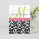 Monograma, Nomes e Convites para Casamentos tema damasco Pretos e Brancos. Monograma e Design por Elke Clarke © 2008, 2009, 2010. Cor damasco Licensed.com e WhiteWhimsicalWeddings.blogspot.com. Personalize com seus nomes de monogramas e cores de casamento. Adicione todas as suas informações de casamento na parte de trás do cartão usando os prompts de menu fáceis de usar do Zazzle.