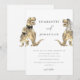Este convite de casamento divertido com tema de dinossauros é uma escolha lúdica e elegante para casais que compartilham o amor por dinossauros e desejam adicionar um toque de humor à papelaria de casamento. Com uma ilustração caprichosa em aquarela de uma noiva e um noivo dinossauros T-Rex, o design combina elegância simples com charme leve. A tipografia moderna adiciona um toque contemporâneo, garantindo que o convite permaneça sofisticado e ao mesmo tempo mostrando a personalidade única do casal. Os modelos fáceis de usar tornam a personalização fácil, permitindo que você personalize os detalhes em tipografia elegante para se adequar ao tema do seu casamento. Criado pela artista Catherine Sweetman, esta obra de arte original captura a vibe divertida e peculiar de um casal que ama dinossauros, mantendo um clima elegante e refinado. Perfeito para casais que procuram um convite de casamento tão único quanto o seu relacionamento, este design certamente trará sorrisos aos seus convidados e estabelecerá o tom para uma celebra