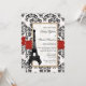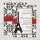 Convite Casamento Torre Eiffel em Damasco Vermelho e Preto