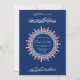 Um convite para o casamento muçulmano feito adorava a caligrafia árabe tradicional e sotaques florais vibrantes num fundo azul profundo. Perfeito para celebrar seu dia especial com elegância e significado cultural.