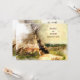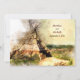 Este convite para o casamento apresenta um belo jogo tribal de aquarelas contra um fundo cênico. No verso acima do texto, há uma flecha com coração e vinha.