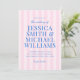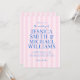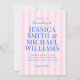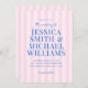 Crie seus próprios convites personalizados para casamento, com tipografia moderna em azul, com padrão rosa listrado