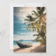 Convite casamento tropical com palmeiras de praia de verão