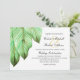 Uma design de convite para casamento com folhagem de água tropical moderna, com lindas folhas de banana. Perfeito para um casamento na praia ou no destino, o modelo de design está pronto para editar com seus detalhes de casamento. Folhas tropicais gráficas de ReachDreams.