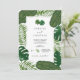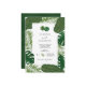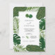 Este conjunto de convites para o casamento de praia tropical apresenta folhas e frondes pintadas à mão como pano de fundo. A tipografia moderna adiciona uma reviravolta nova e chica a esta design de verão clássica por Impressões de tartes Gatinhos.