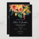 Trendy and eye, este único Convite Floral de Casamento Tropical de Narração Negra Floral de Cor Negra, apresenta um tom luxuoso com seu impressionante fundo preto que contrasta lindamente os vibrantes sotaques florais de aquarela. As flores coloridas, incluindo o hibisco exótico, se entrelaçam com folhas de palma exuberantes, casando-se com o melhor de ambos os mundos: elegância e talento tropical. Perfeito para aqueles que planejam um casamento de destino, este convite moderno e refinado transportará seus hóspedes para uma praia ensolarada, apontando para o exótico e memorável dia que se avizinha. Personalize os estilos de fonte, o tamanho do texto, a cor e o posicionamento ao seu gosto usando a Ferramenta Design. Visite a coleção de convites de Casamento Tropical Floral Negro para itens correspondentes.