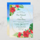 Perfeito para casamentos de destino ou qualquer tema tropical, esse convite de casamento apresenta uma estrutura geométrica de ouro em moda e buquês florais tropicais de mídia mista. As fotos das flores vermelhas e hibiscos brilhantes e da plumeria branca são compensadas por folhas tropicais de cor aquosa. Uma praia tropical ao fundo completa o tema. Evoque a atmosfera do Havaí no seu dia especial!