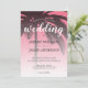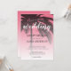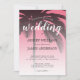 Convite de casamento de destino chic com uma palmeira tropical design num fundo cor-de-rosa com uma escrita elegante e uma tipografia moderna. O rosa brilhante desaparece sobre um fundo branco. Basta adicionar seus detalhes de casamento a este convite de casamento de praia na moda tropical. Desenvolvido exclusivamente para você pelo Happy Dolphin studio.