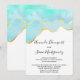 Convite de casamento com um design vibrante de verão. Imagem em aquarela turquesa / verde aqua com uma borda dourada ondulada. Elegante e adorável.