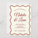 Este convite de casamento é perfeito para o seu casamento com design único. Um convite de modelo de casamento simples e elegante e minimalista. Que apresenta um fundo leitoso de marfim comum. E os nomes próprios da noiva e noiva engraçadas e brilhantes e vermelhos profundos e informações editáveis com uma foto mutável no verso com um código QR personalizável para que seus convites pudessem RSVP online. Barato e é também um e-convite eletrônico digital se você quiser enviá-lo por texto ou email. Todas as informações são personalizáveis clicando no botão personalizar. Então pegue-o e faça-o seu para que você faça você convidar noivos e excitados.
