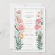 Este convite de casamento único e elegante é perfeito para a primavera e o verão. Apresenta flores e folhagem ranóculas pintadas a aquarelas nas laterais da tipografia da na moda e é esboçada com uma borda única. O esquema de cores inclui bonito rosa, cor de laranja, branco e verde florestal. É lindo, moderno, artístico e na moda, com um toque de fã-bô. É a design perfeita para impressionar seus convidados.