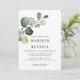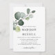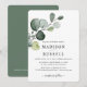 Simples e elegante folhagem de eucalipto único com salpicos de ouro para convite de casamento. Tipografia clássica e cursiva. Adicione o nome do noivo e da noiva no verso. Itens correspondentes nesta coleção.