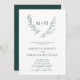 Monograma Botânico Elegante Código QR RSVP Rich Forest Convite para Casamento Verde... A frente do nosso convite de casamento para monogramas elegante apresenta uma coroa de louros botânicos folhetos mostrando as iniciais da noiva e do noivo acima do texto de convite personalizado em sorse verde de floresta rica e sans serif typografia em um fundo branco nítido. A parte verde do convite exibe o código QR do seu site de casamento, bem como o próprio URL do site, permitindo que seus convidados facilmente RSVP on-line e visualizem todos os detalhes normalmente enviados em um pacote de casamento. O exemplo de código QR e todo texto de exemplo (além dos elementos de caligrafia) podem ser facilmente revisados com suas próprias informações sobre o modelo de personalização.