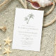 Este simples convite para o casamento de praia tropical apresenta duas palmeiras no topo, com um texto elegante clássico, num esquema de cor verde-branca e sábio, com a coordenação do verde-sábio no verso.