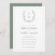 Estes convites para o casamento apresentam um elegante design botânico com monograma e tipografia moderna em verde-sábio. Personalize com seu texto. Material de papelaria correspondente também disponível.