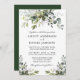 O Cartão de Convite para Casamento de Cores Biológicas Elegantes Modernos inclui folhas de eucalipto, folhagem botânica verde, folhas azuis empoeiradas e outros belos lençóis botânicos. Verdes.