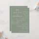 Convites de casamento botânicos com seus nomes e detalhes de casamento em letras brancas divididos por uma videira de folhas esboçadas com um fundo verde-sábio. Os elegantes convites de casamento coordenam-se com a nossa coleção de casamentos de Folhas em Cascata.