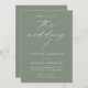 Convites de casamento minimalistas e modernos, com detalhes de seu casamento em letras brancas simples com "o casamento de" em um roteiro elegante de caligrafia. O fundo verde de sábio pode ser alterado para uma cor de sua escolha. Projetado para coordenar com a nossa coleção de casamento do Modern Elegance.