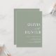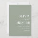 Este elegante convite de casamento apresenta caligrafia moderna e uma típica fonte ousada. Com o seu passado verde-moderno, é chique e fresco. Os nomes dos casais são ousados, fazer o convite minimalista para o casamento.