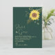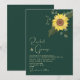 Simples, moderno, elegante, minimalista, botânico, convite contemporâneo verde esmeralda com adorável e único girassol gigante e folhagens.